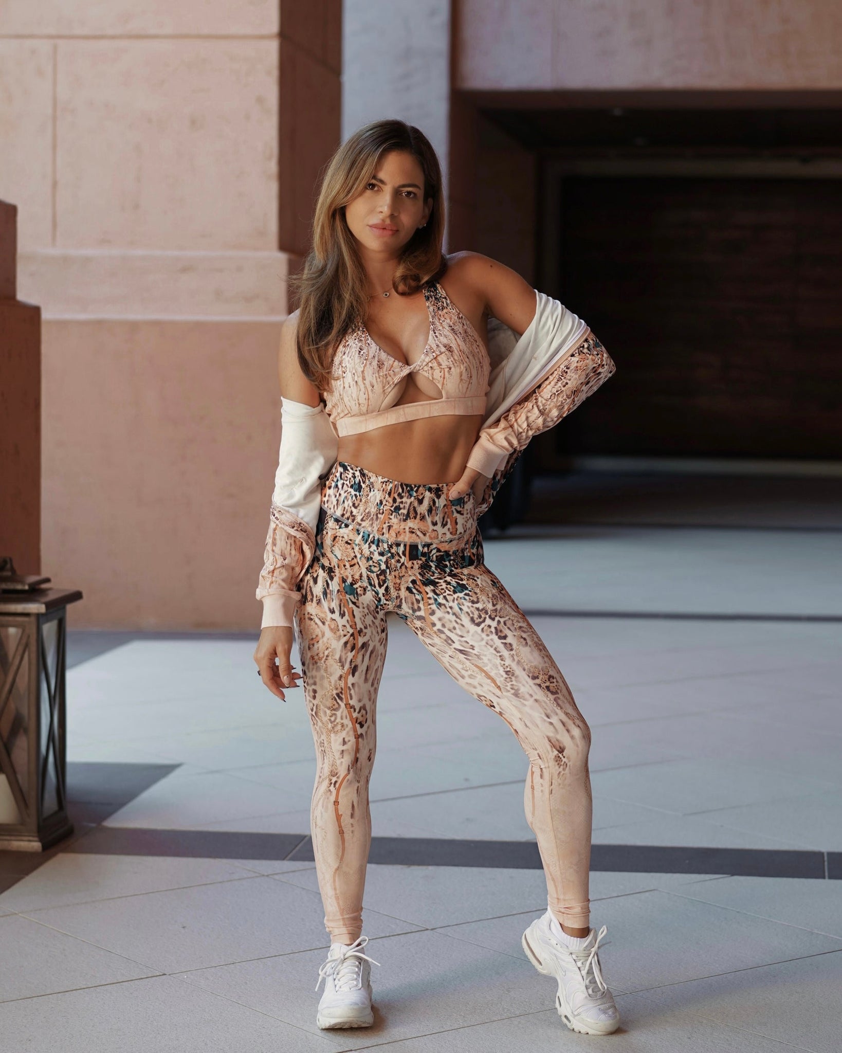 Colors: Soft pink gradient mixed with flowers and leopard print.