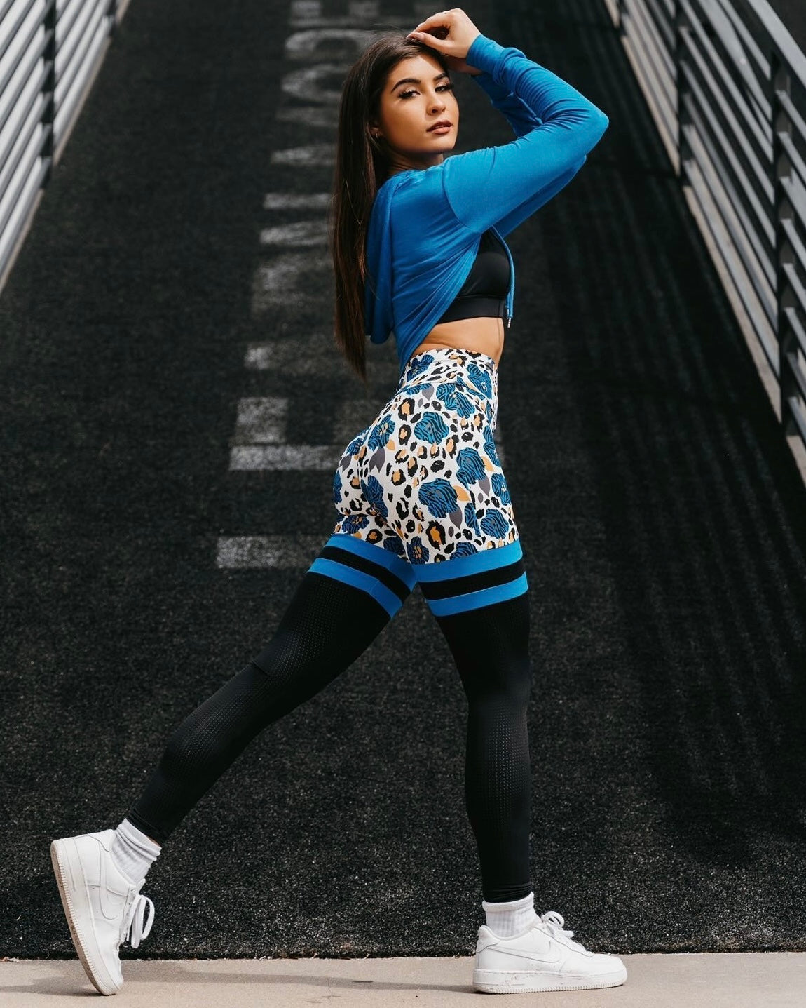Cropped hoodie can be worn over sports bra or over a shirt. Pairs well with Blue Blossoms collections.